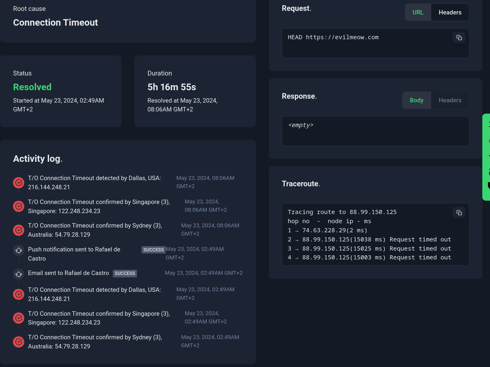 At 4am evilmeow.com and all my sites (including this log started alerting)