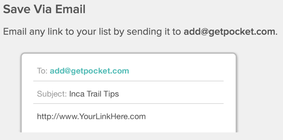 One of the less known pocket features is the possibility to send links via email. We will make good use of it. Remember that you need to send the email from the same email address you have in pocket.